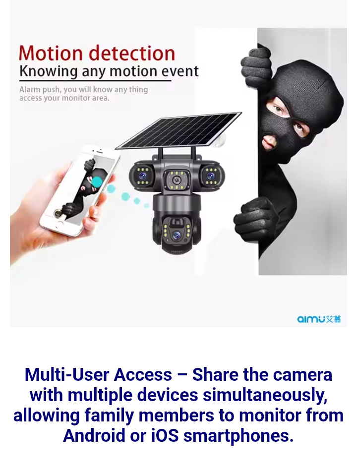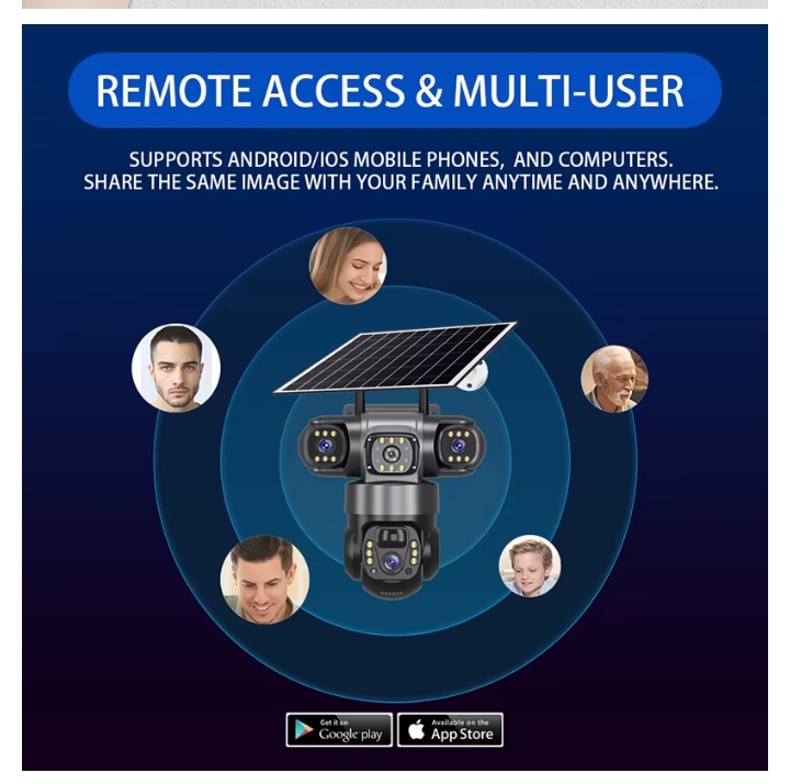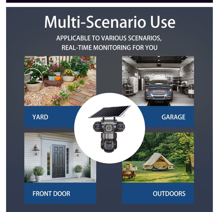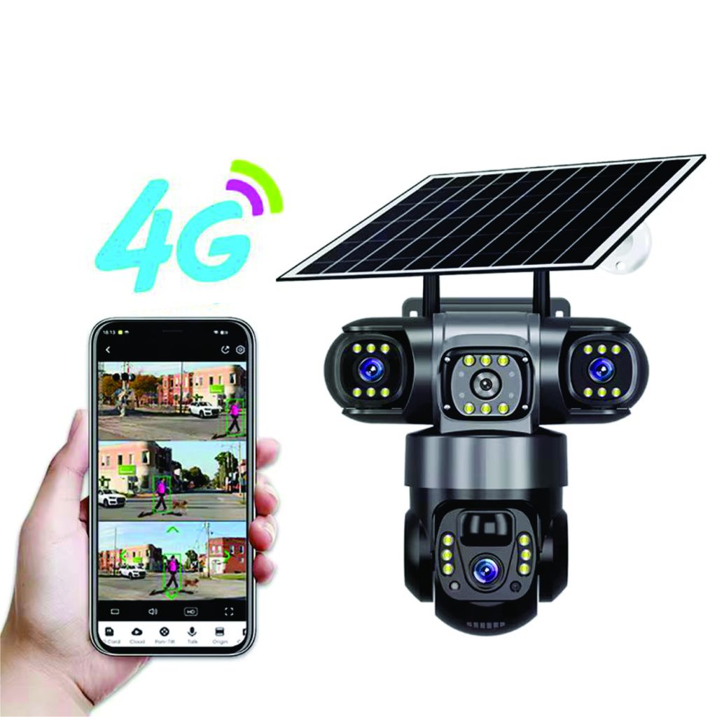 MONITOR YOUR business, shop, office, home, car, fuel station, hotel, farm, kids, construction site, house, or any of your properties using our ULTRA MODEN TRIPLE LENS AI SOLAR CCTV CAMERA + FREE 128GB MEMORY CARD.